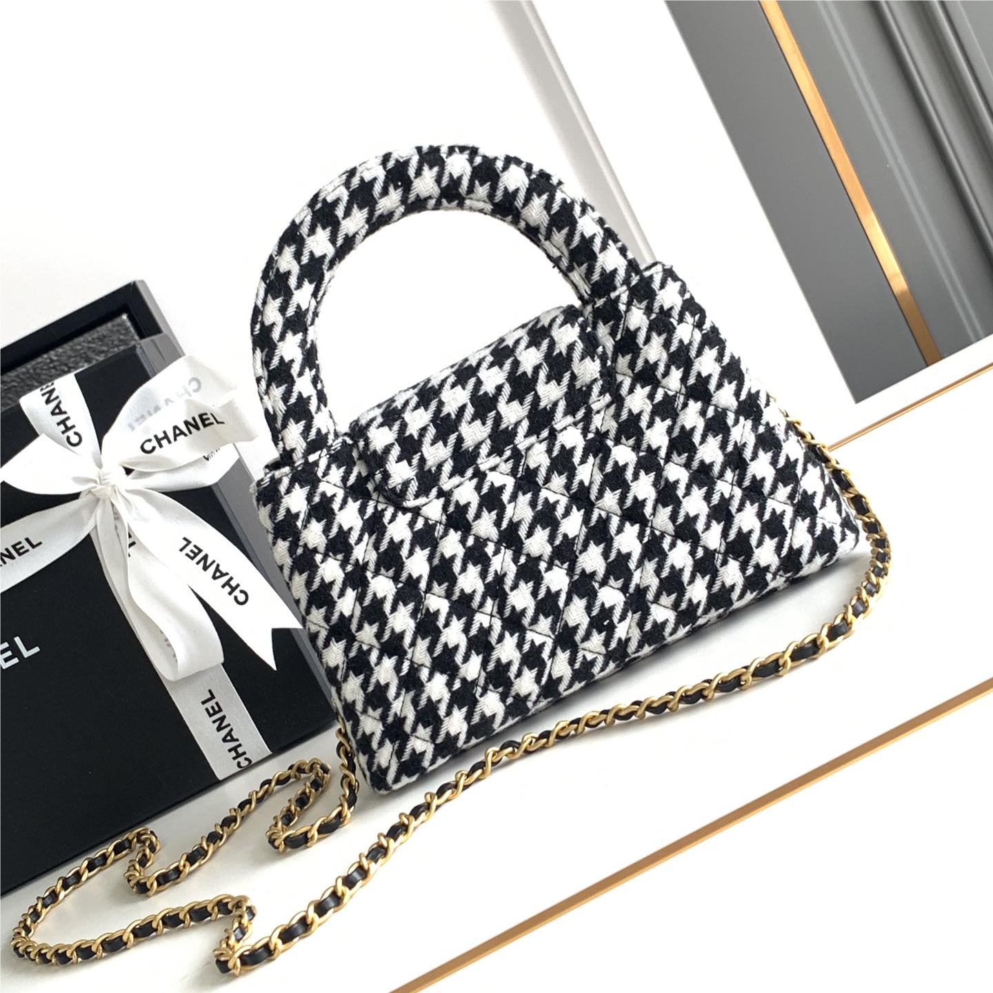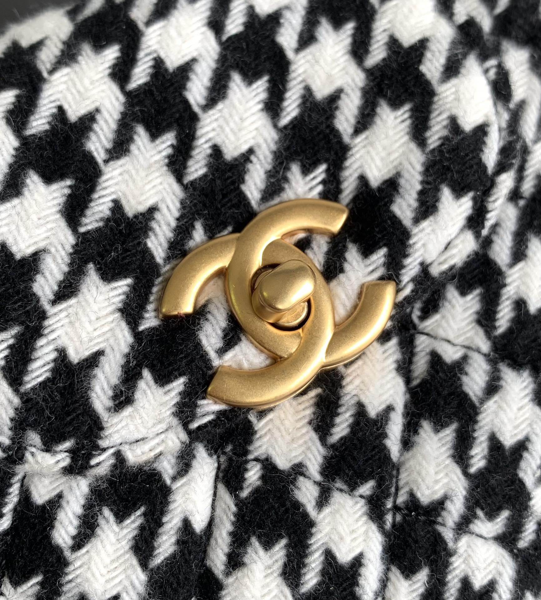 Chanel Black and White Houndstooth Pattern Exquisite Diamond Double C Chain Bag