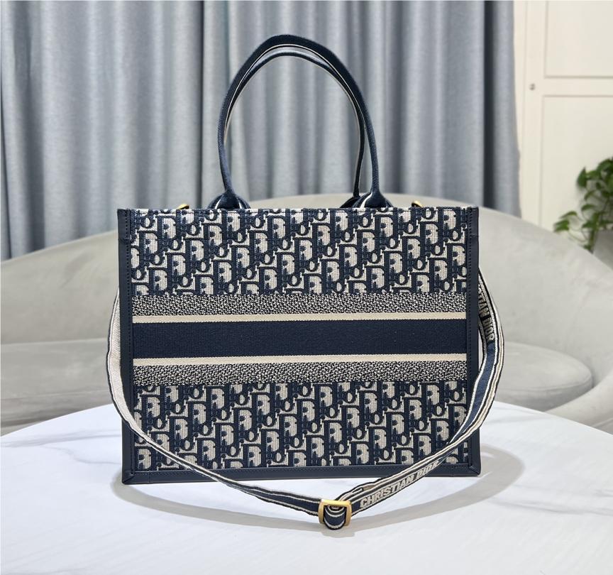 Christian Dior BOOK TOTE series dark blue medium printed embroidered handbag