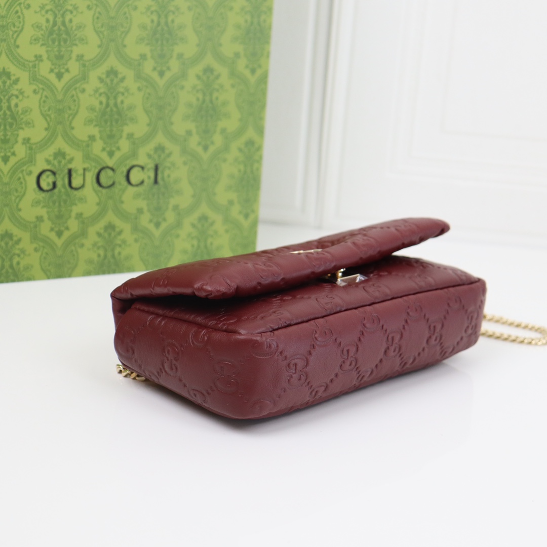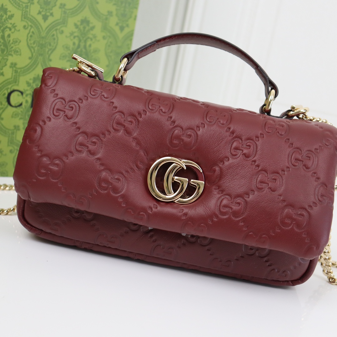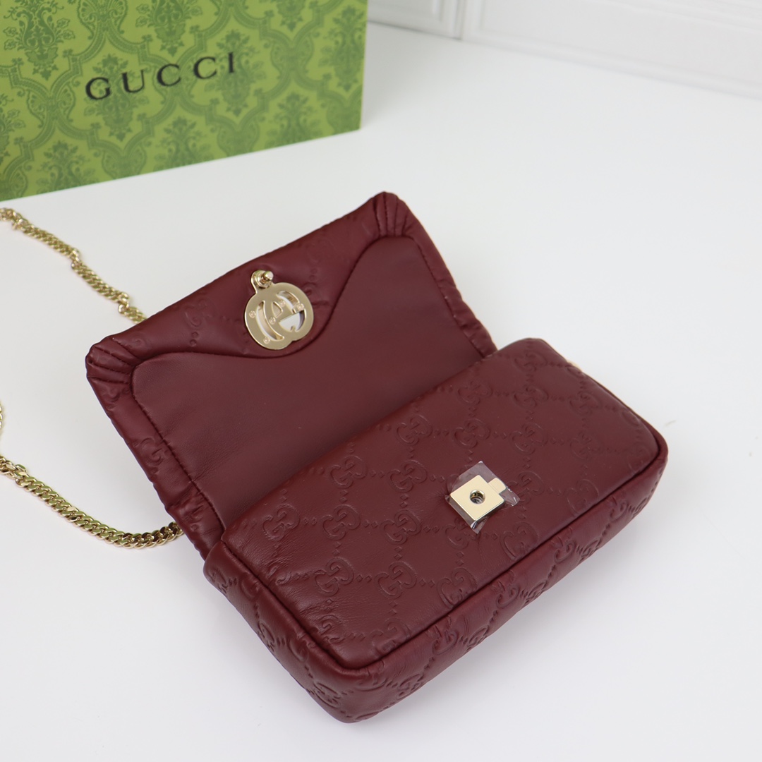 GUCCI Marmont crimson diamond pattern exquisite hardware shoulder strap mini bag