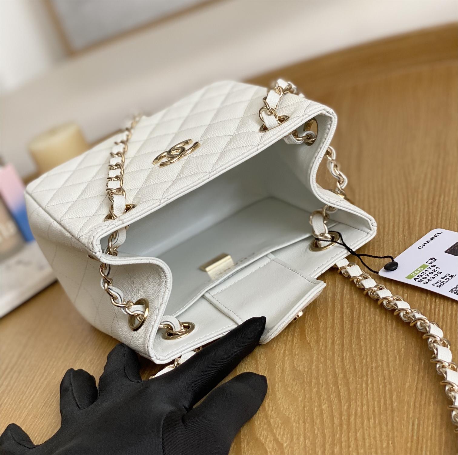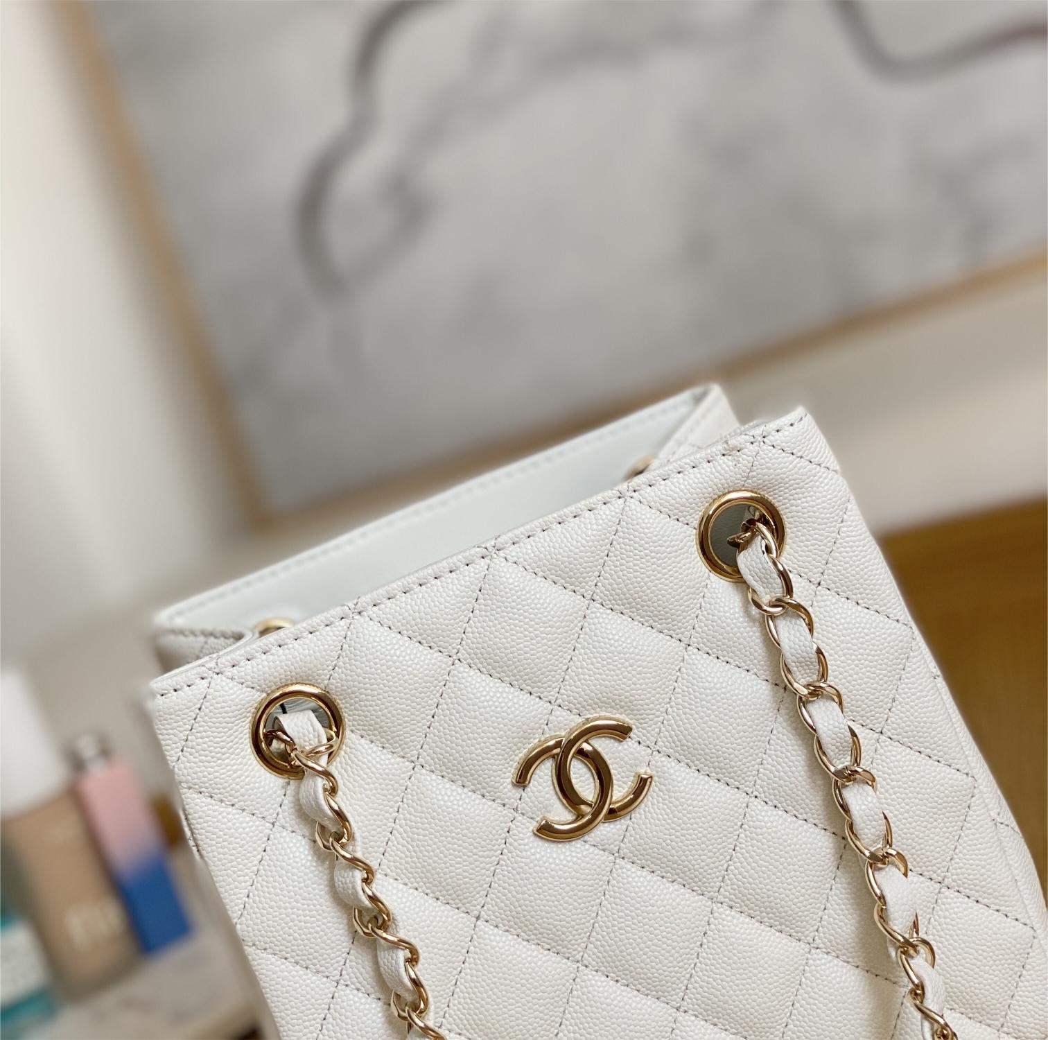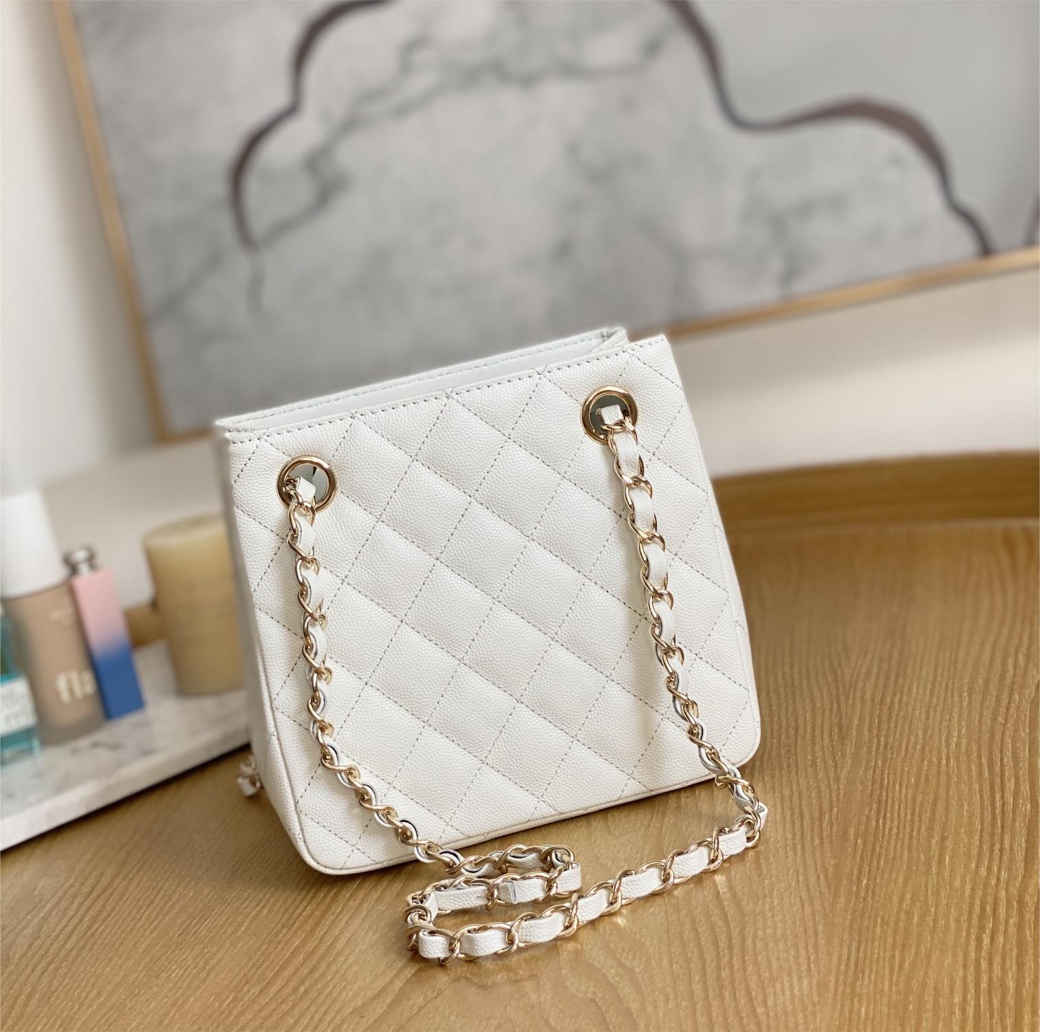 Chanel Classic Series Pure White Caviar Textured Exquisite Diamond Pattern Double C Chain Bag