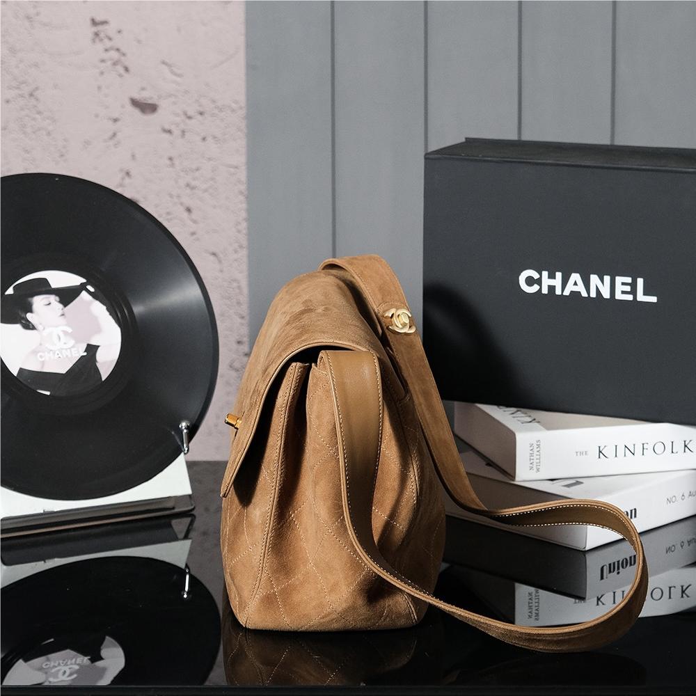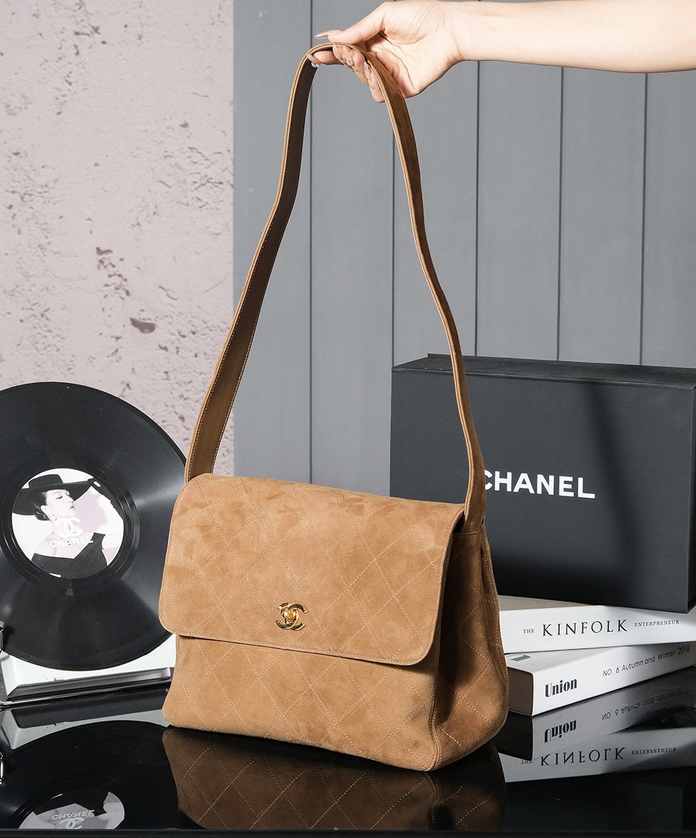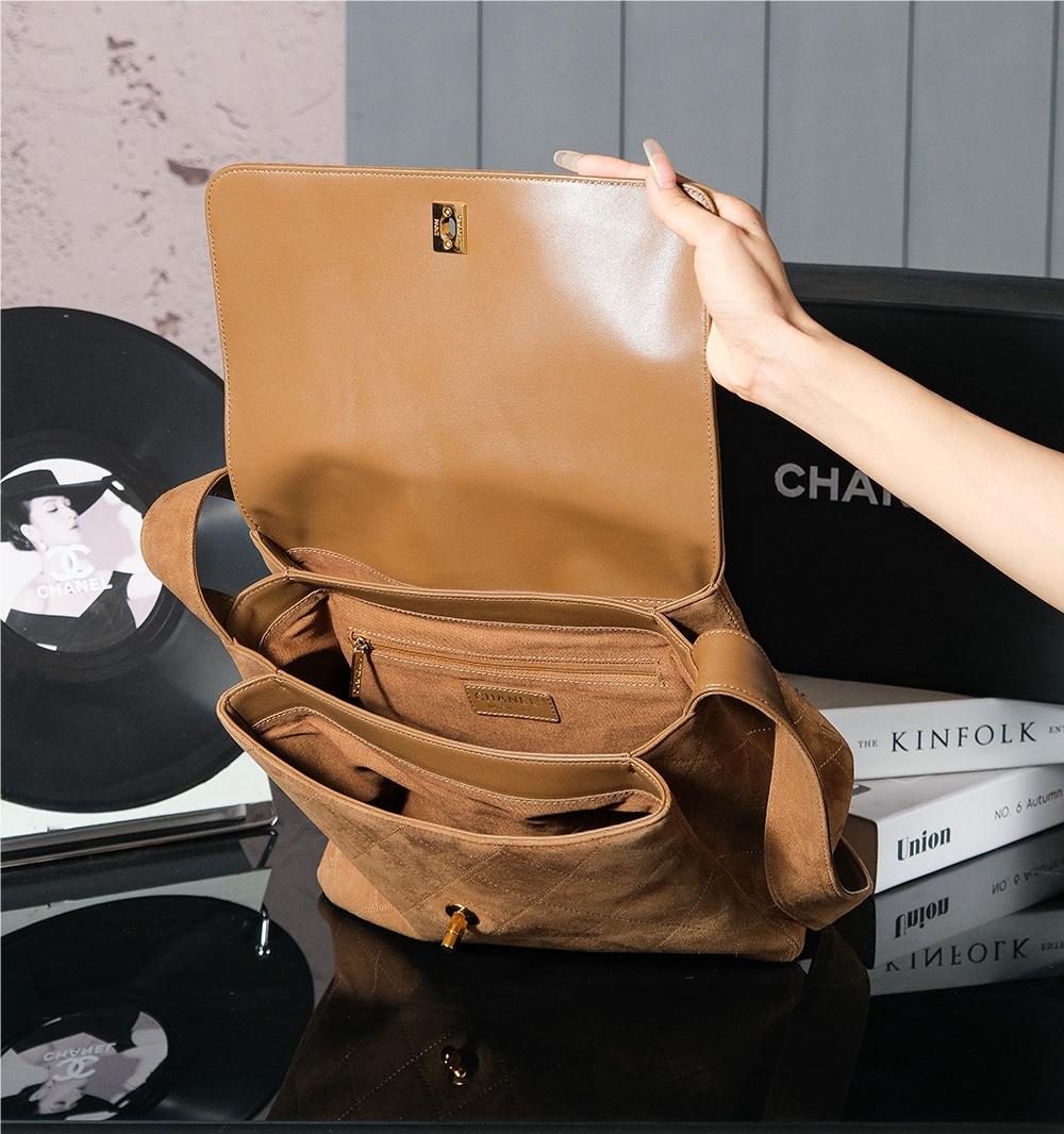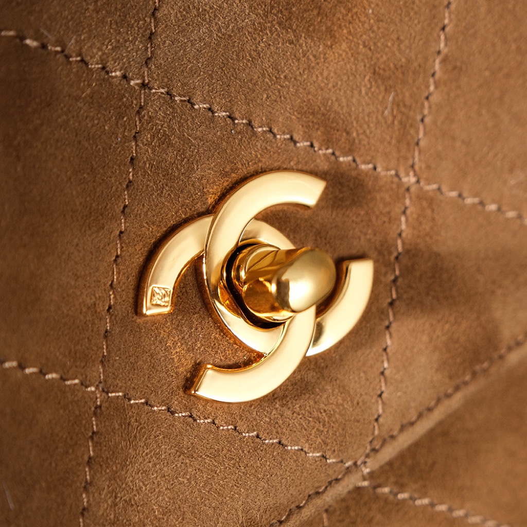Chanel's iconic Classic Flap bag in brown suede and chain