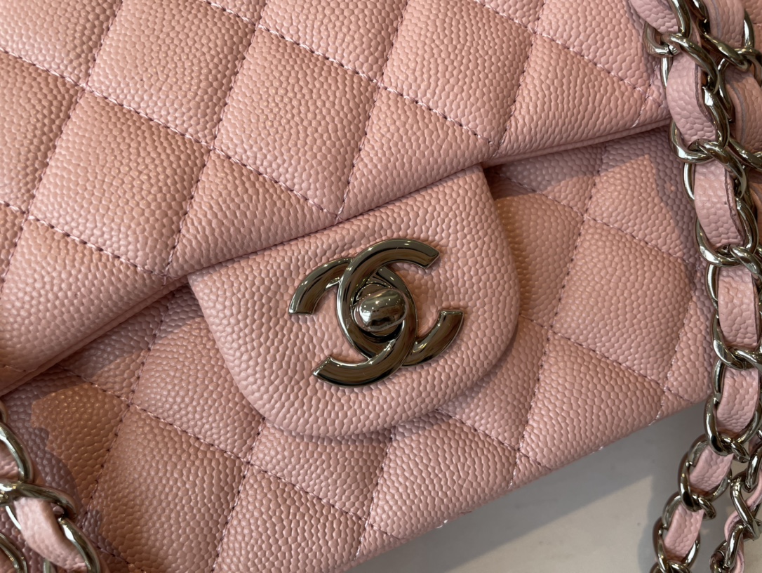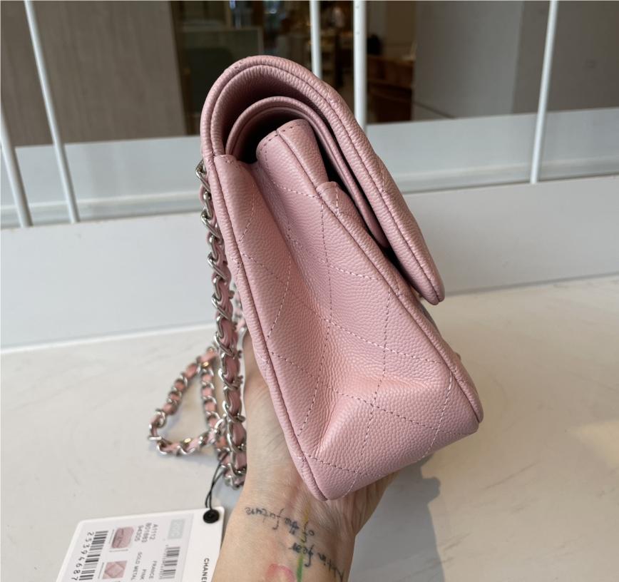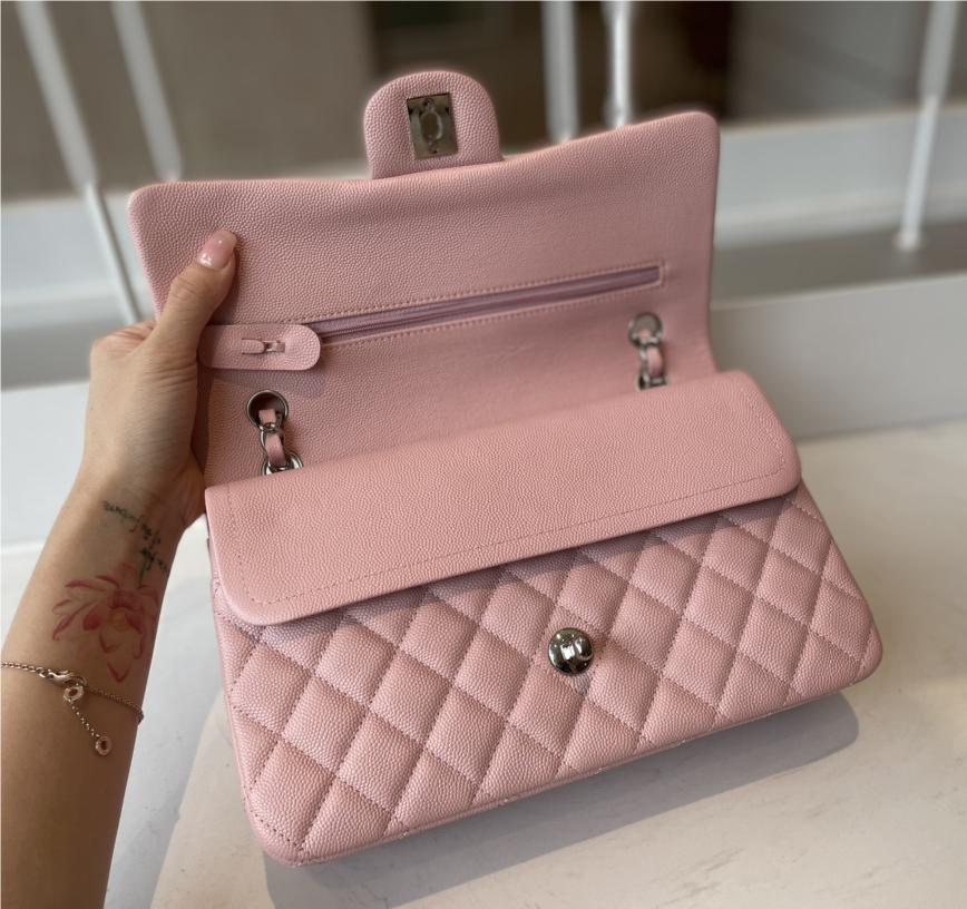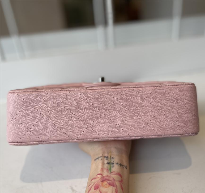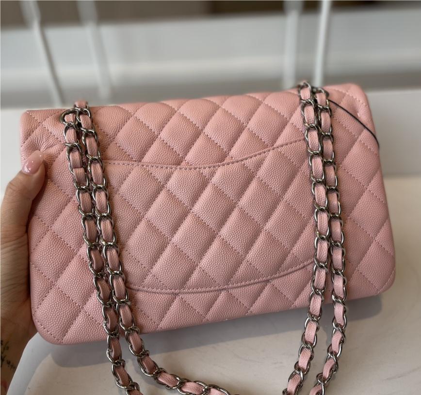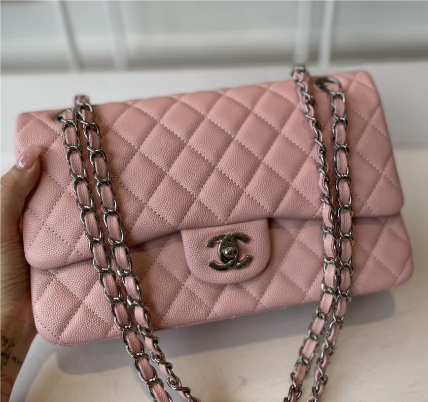 Chanel classic flap diamond check dream pink leather small silver chain bag