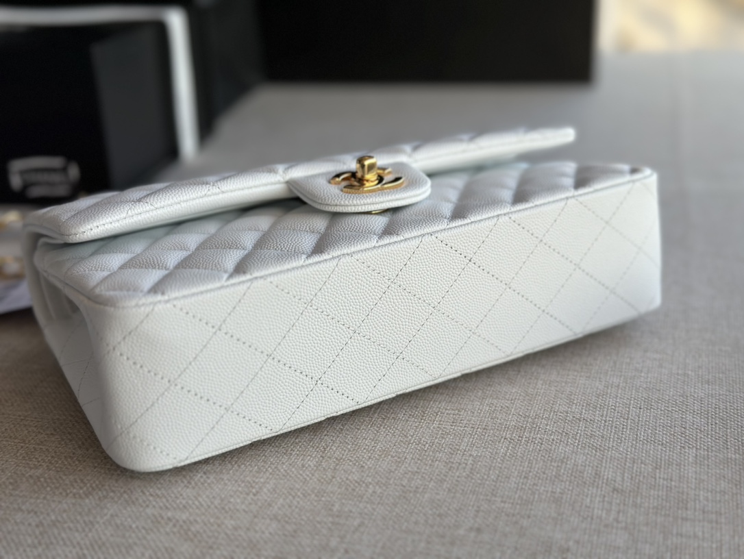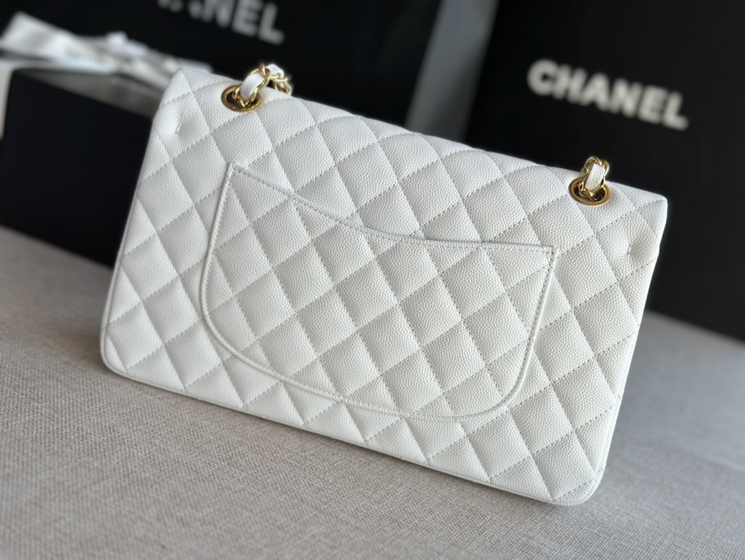 Chanel Classic Flap Diamond Check Pure White Leather Small Chain Bag
