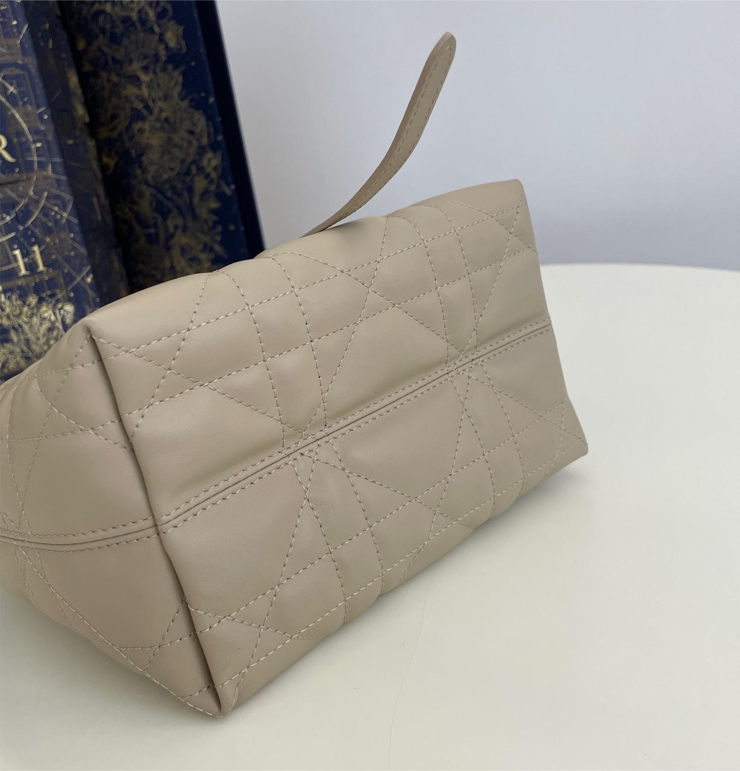 Christian Dior LADY DIOR classic small cannage stitching grey leather handbag