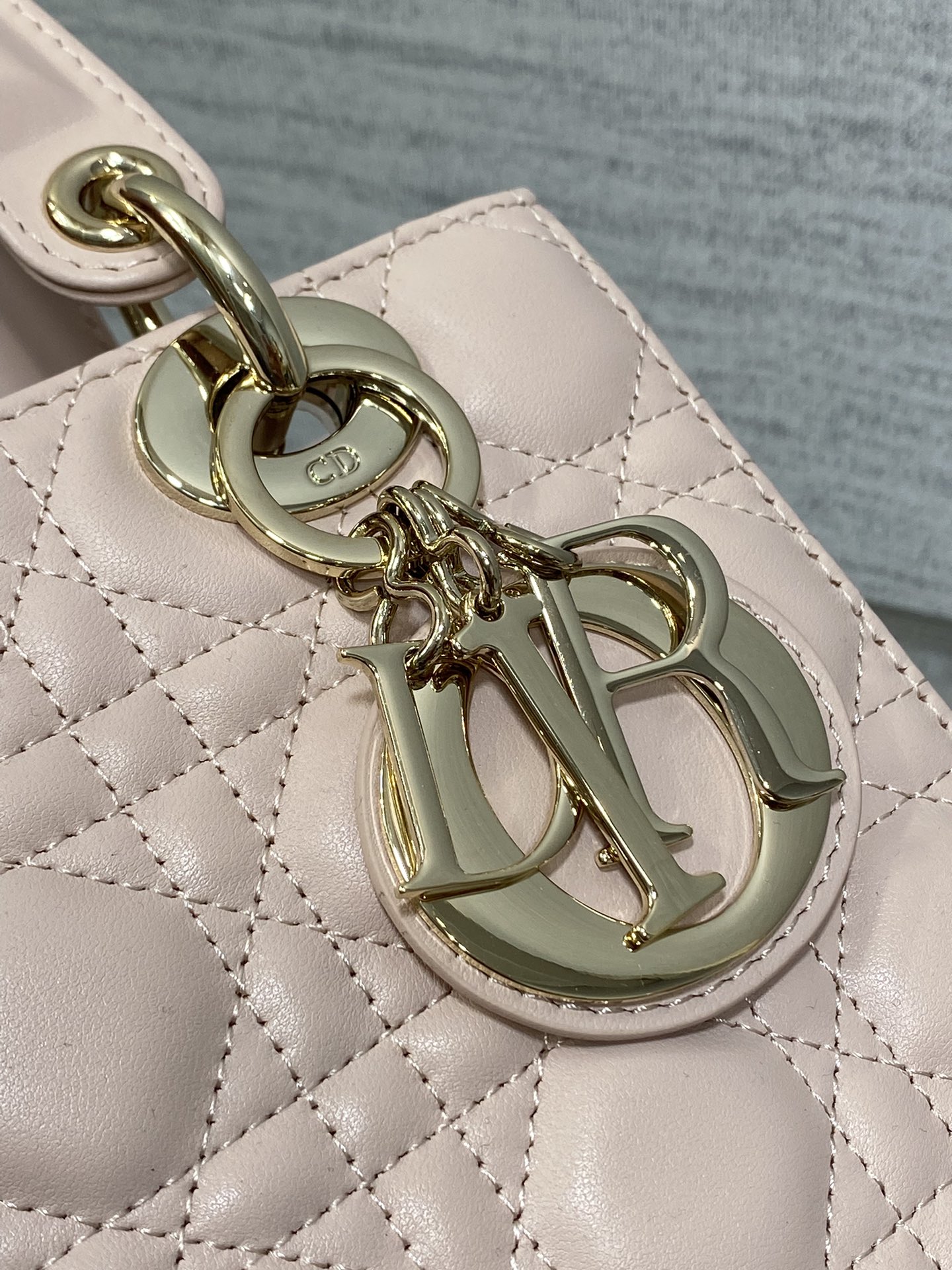 Christian Dior LADY Dior series cute pink patent leather texture exquisite hardware handbag