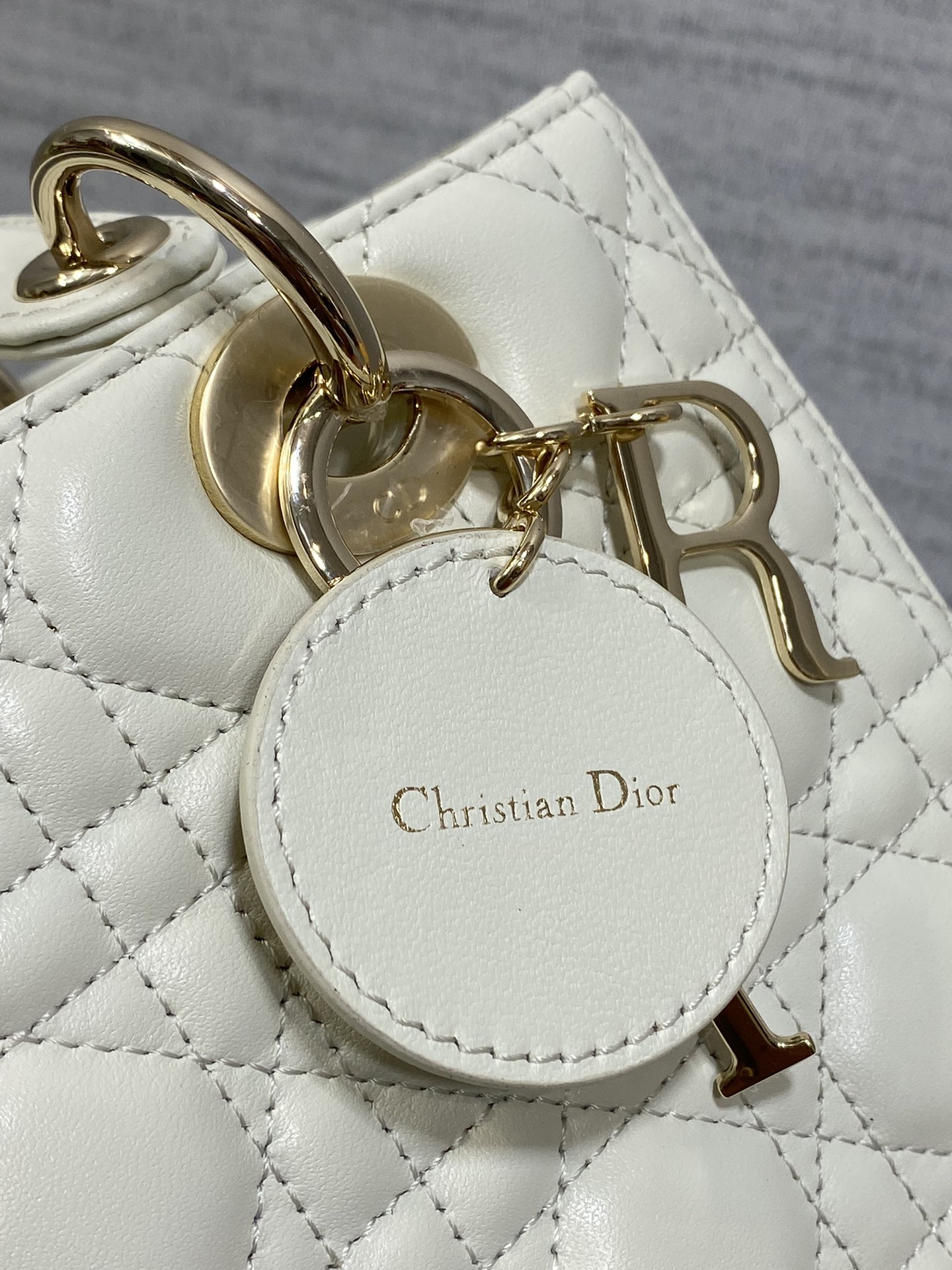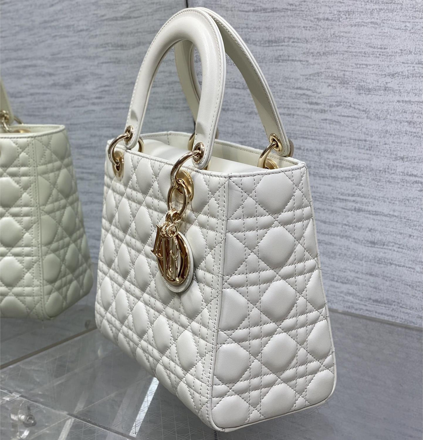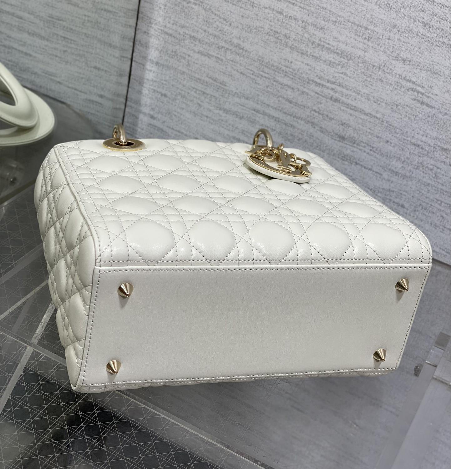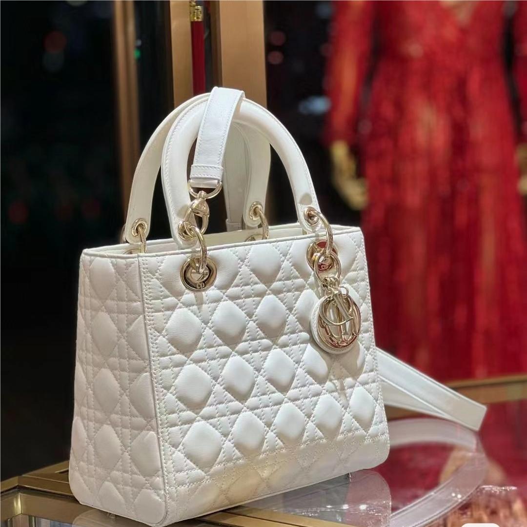 Christian Dior LADY Dior series pure white patent leather texture exquisite hardware large handbag