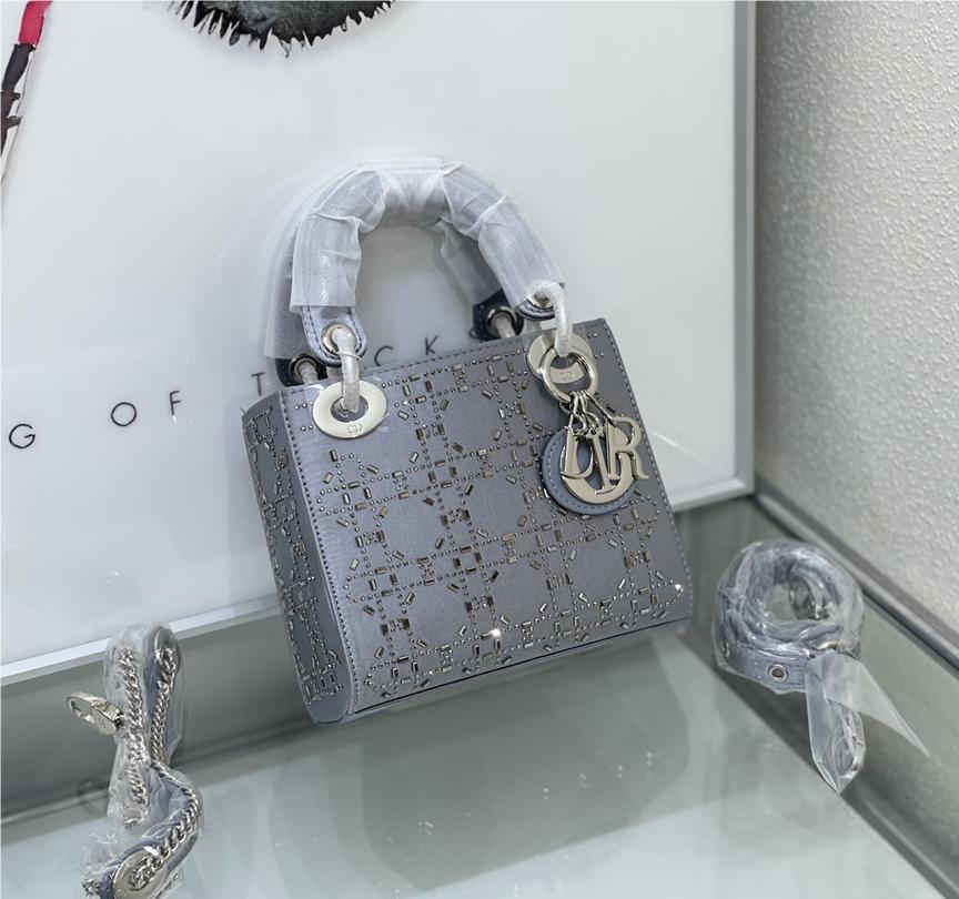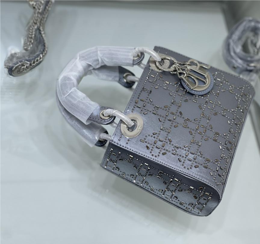 Christian Dior Lady Dior Cannage Lambskin Leather Bag with Crystal Embellished