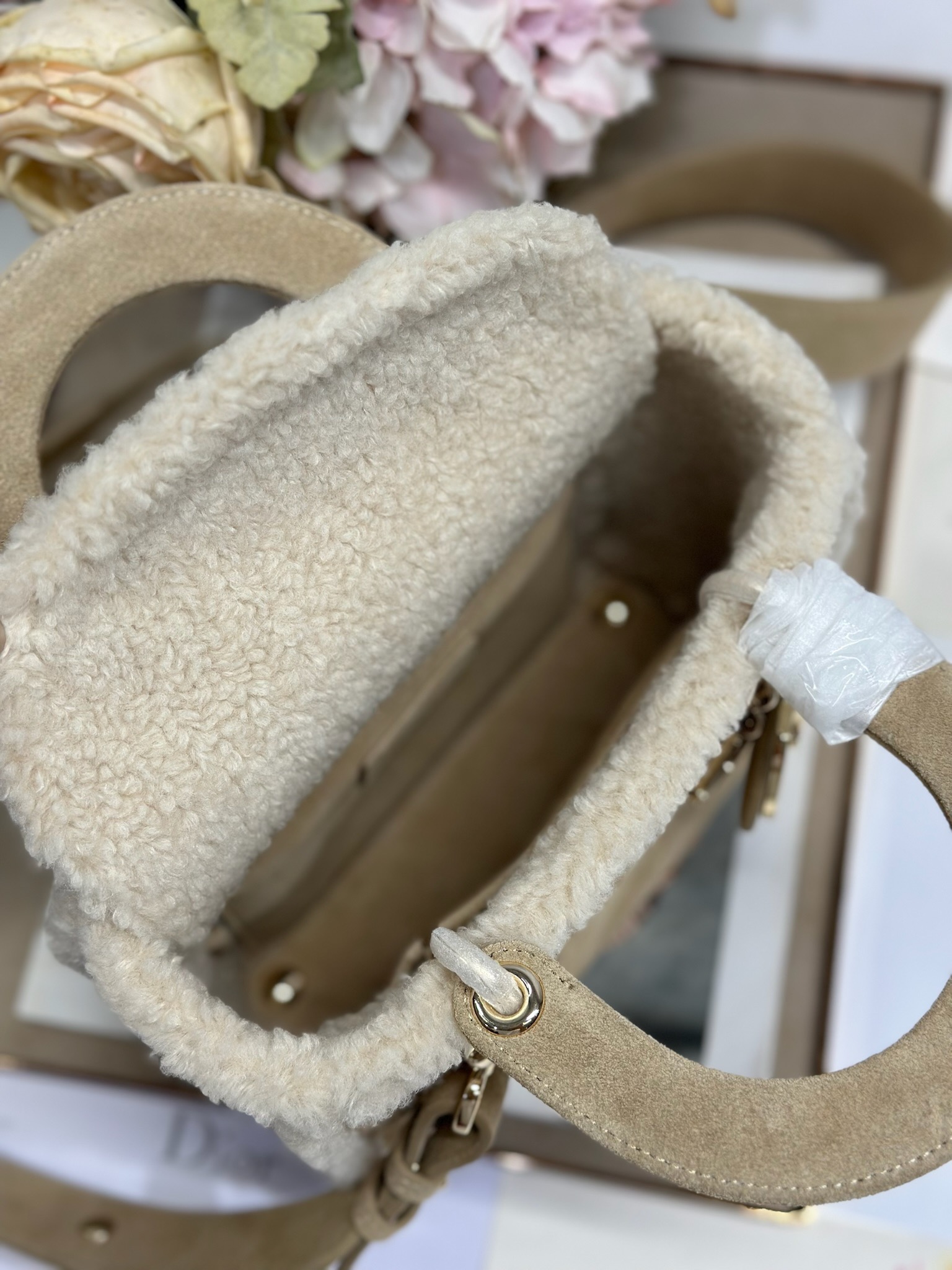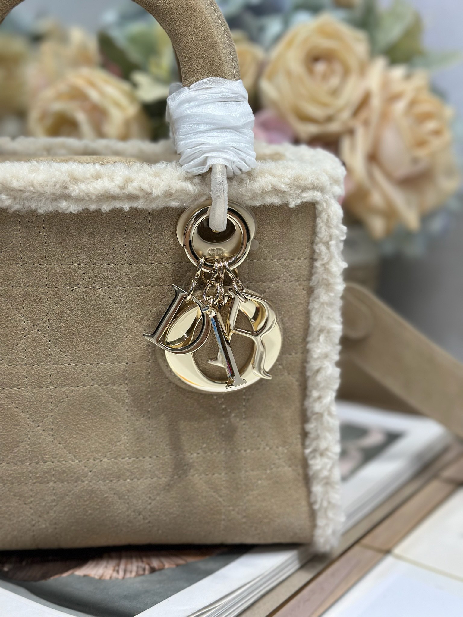 Christian Dior Lady Dior Small Classic Beige Brown Leather Velvet Accessory Handbag