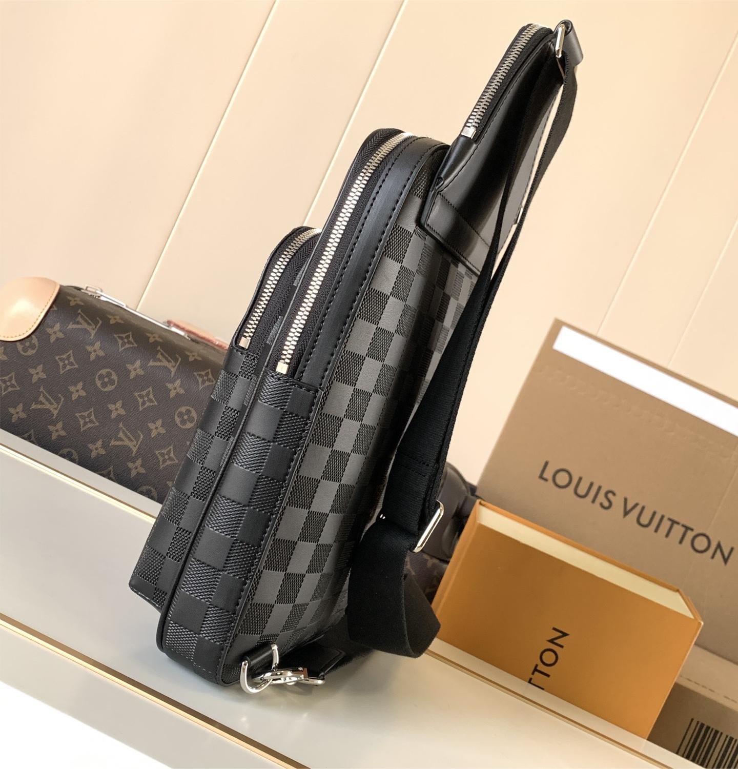 Louis Vuitton Chequer Textured Collection Classic Black Leather Chest Bag