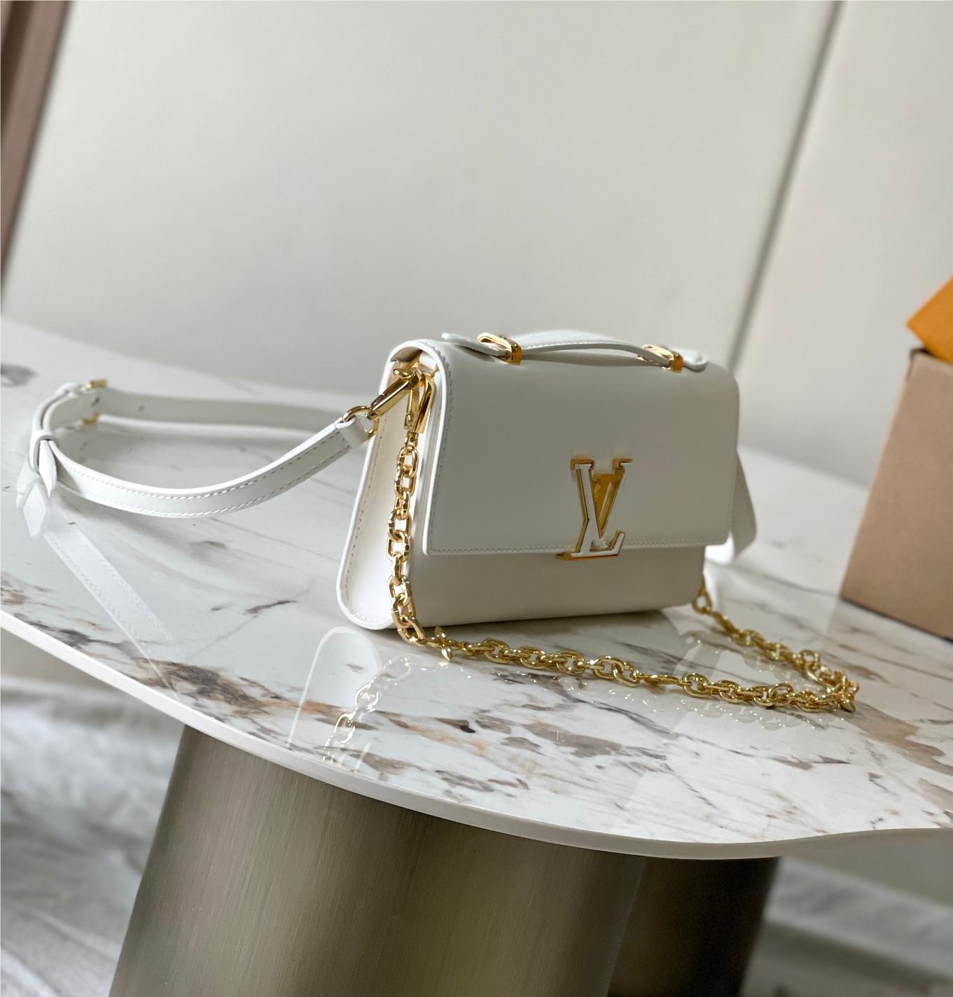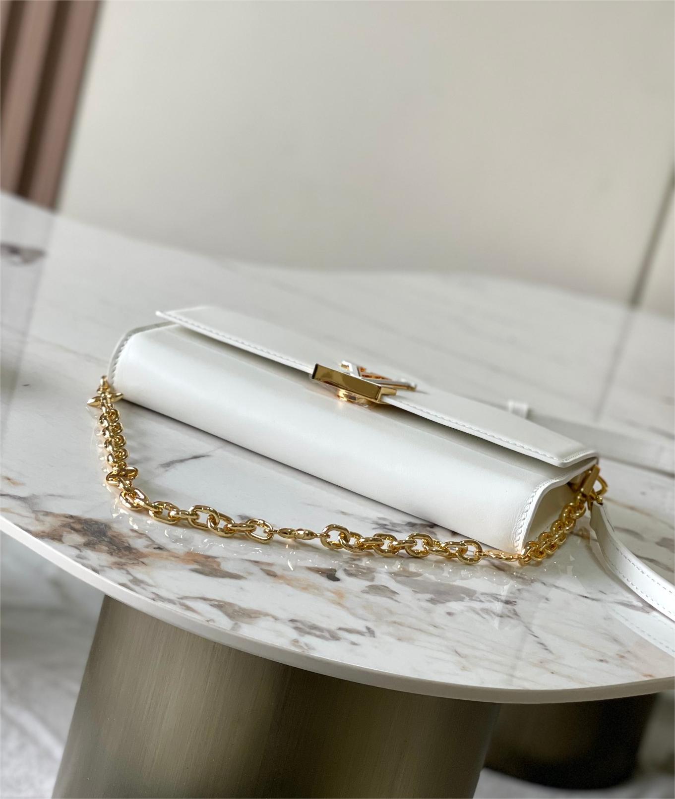 Louis Vuitton neverfull pure white leather exquisite hardware chain bag