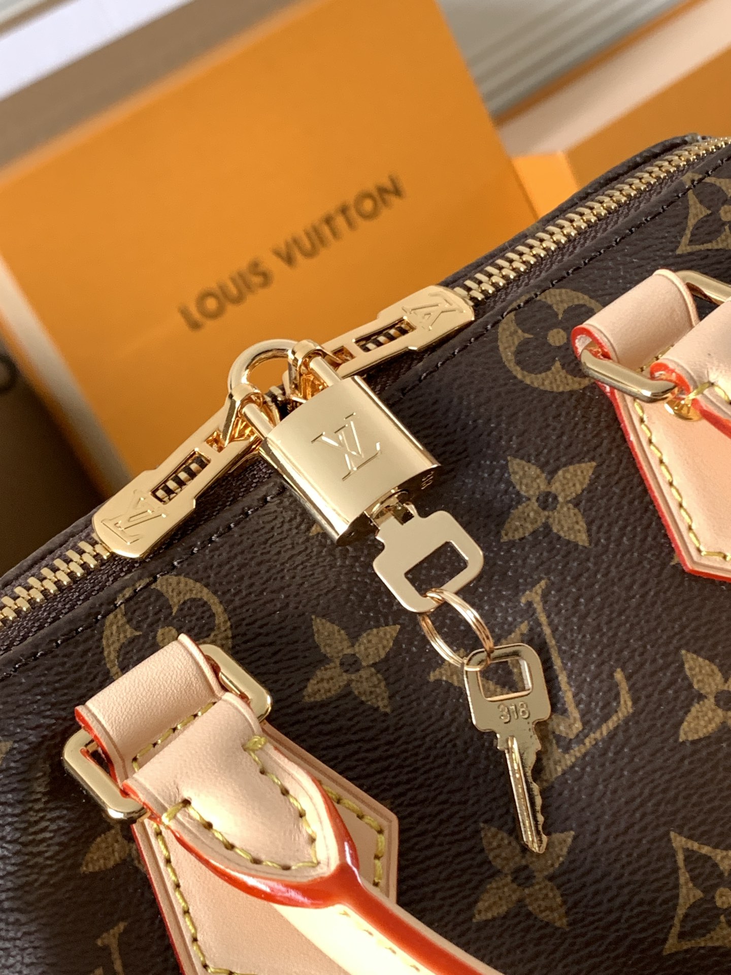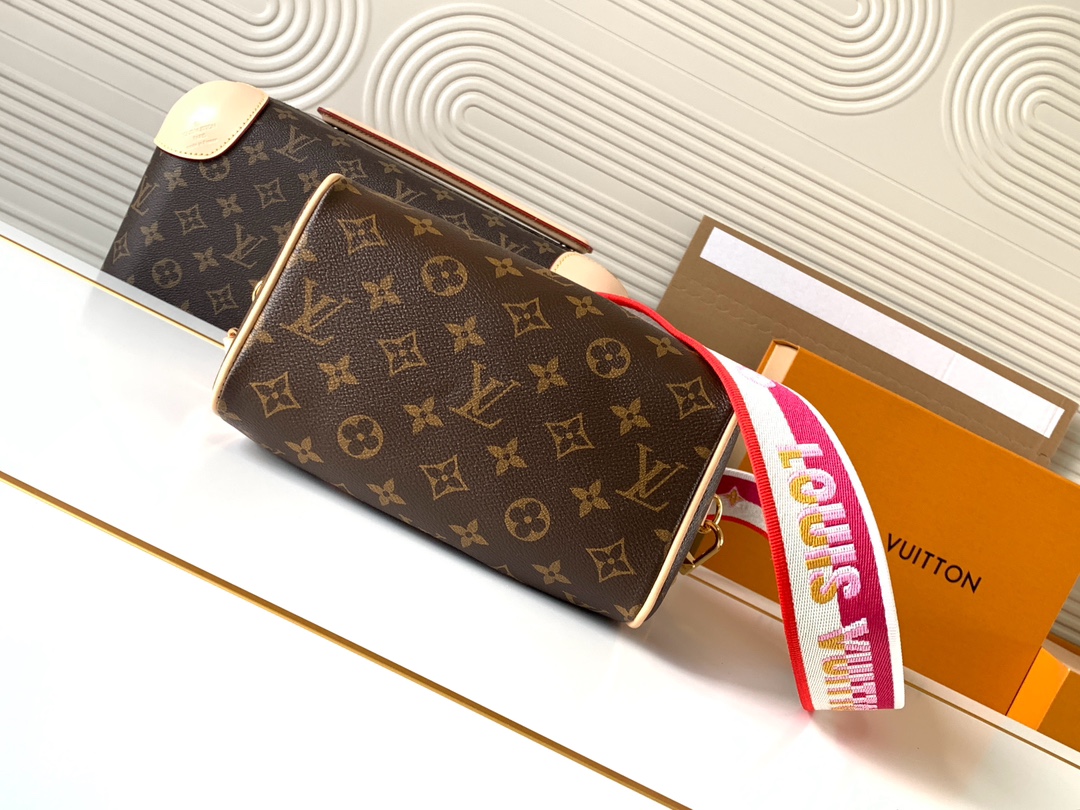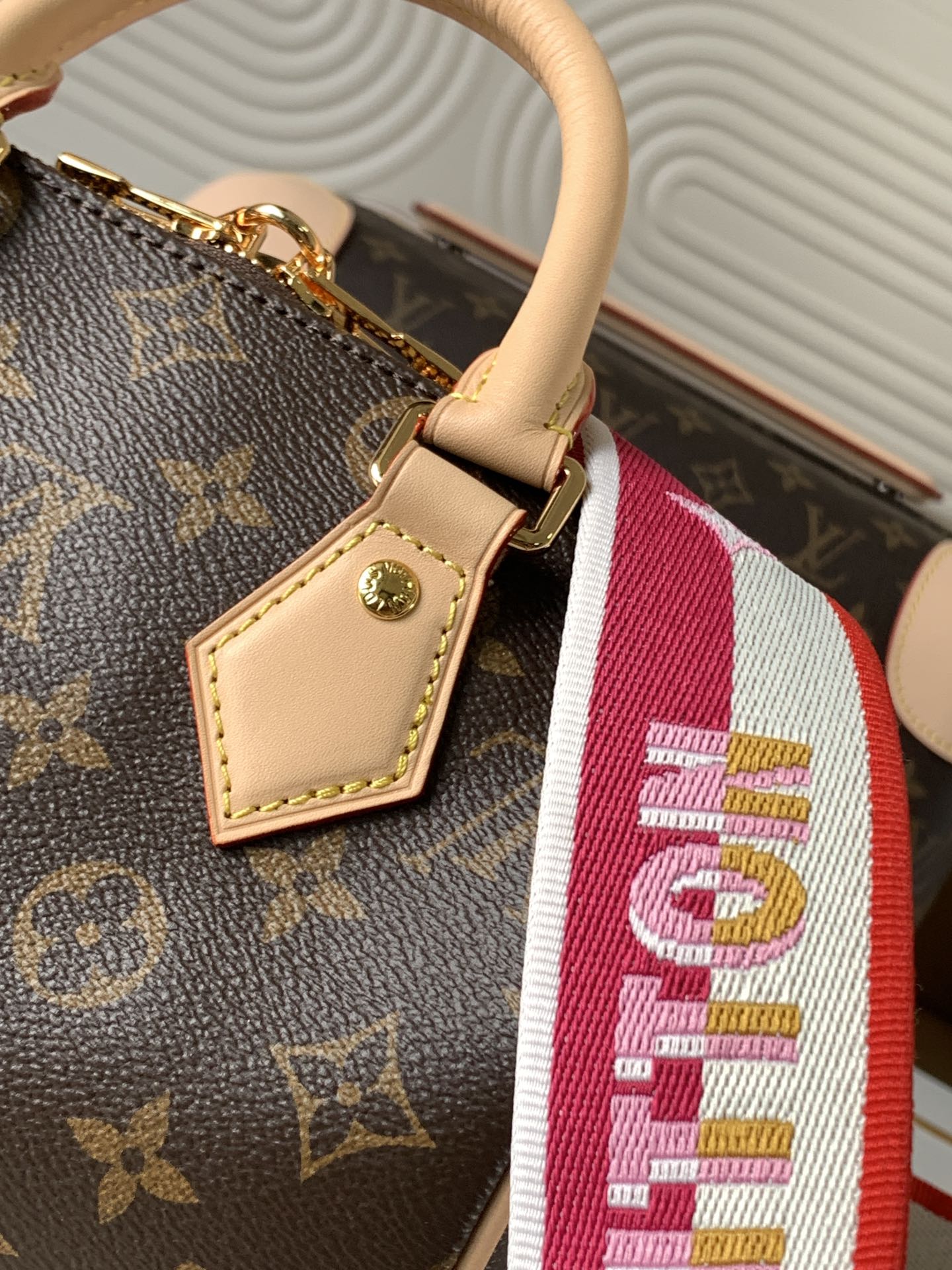 Louis Vuitton Nano Speedy Classic Brown Leather Canvas Textured Colorful Shoulder Strap Tote