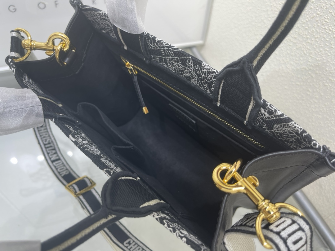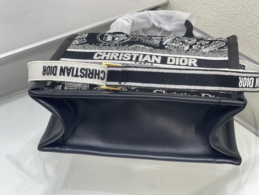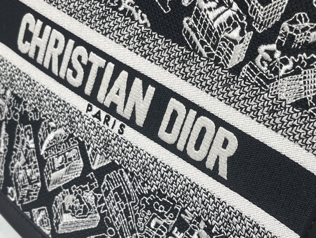 Christian Dior BOOK TOTE series Medium black and white with printed embroidered handbag