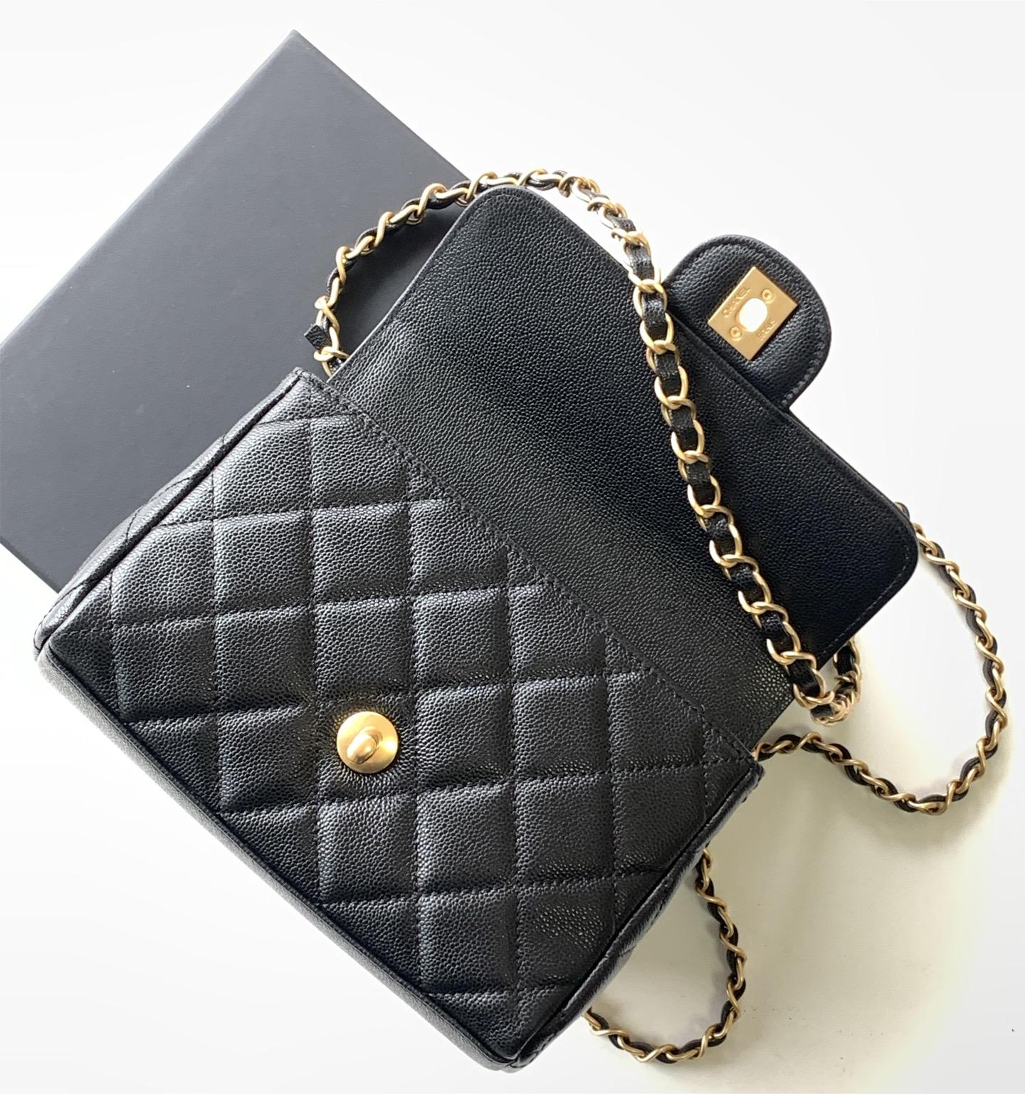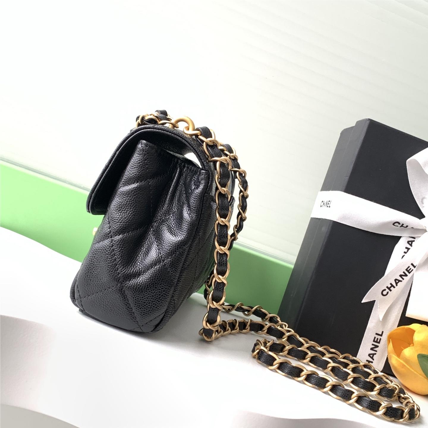 Chanel classic CF series bright black lambskin gold hardware chain bag