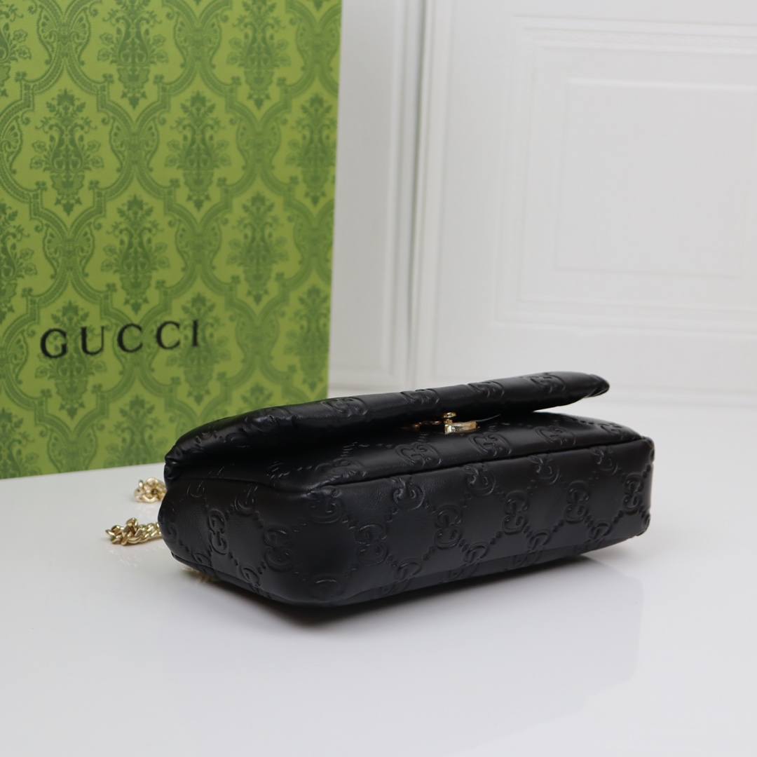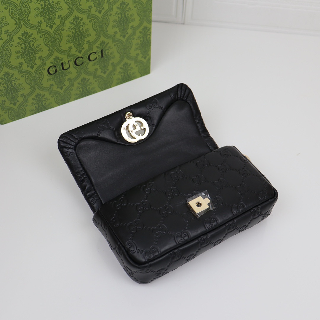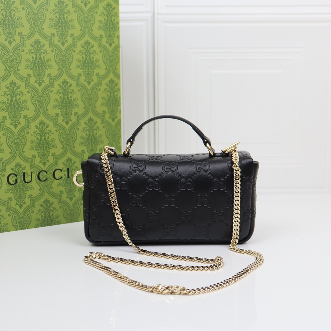 Gucci GG Marmont series heavy black diamond check leather exquisite hardware handbag